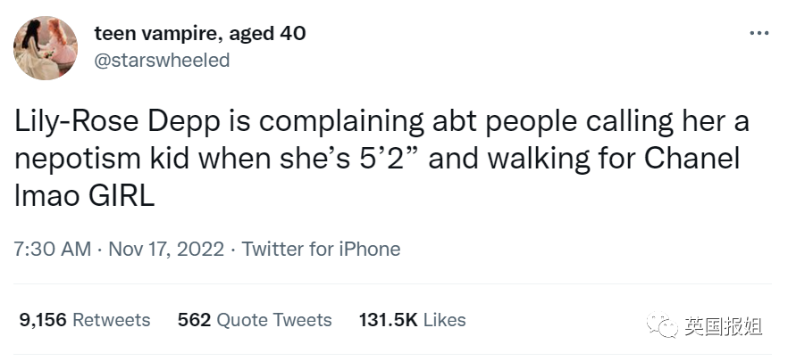 “1米6的莉莉罗丝能为香奈儿走秀,竟然还抱怨人们把她叫做星二代。”