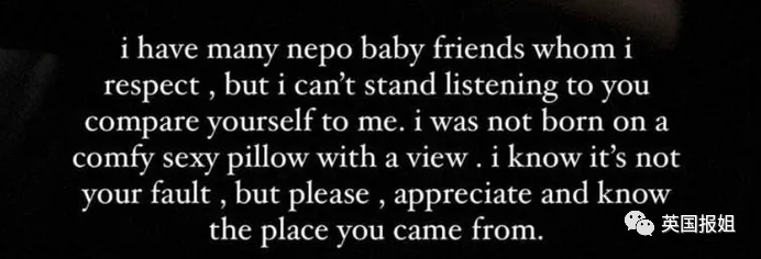“我有很多值得尊重的星二代朋友,但我难以忍受听到你把自己和我进行比较。”