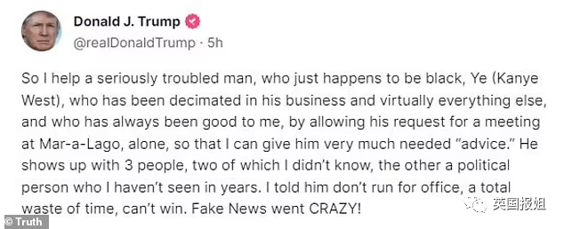 之前大家都觉得川普疯,没想到和Ye一比,川普竟然成为了那个说话委婉得体的人。
