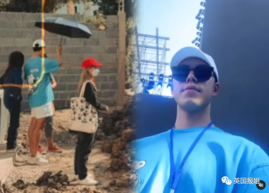 但吃瓜群众的重点都放在照片里那个穿蓝色史努比T恤、撑伞的男子,看着怎么这么眼熟呢?