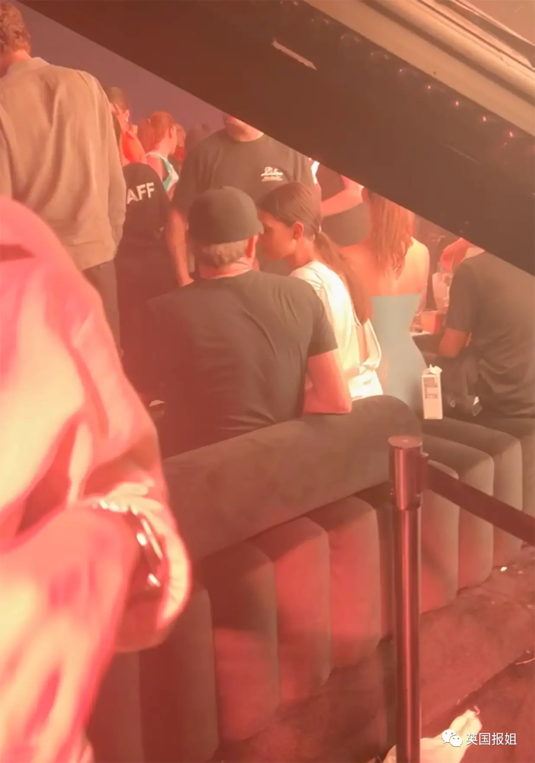 富豪夫妇请了著名说唱歌手50 Cent、Cardi B表演助兴,小李子被拍到和托比一起,在台下跟着音乐摇摆,又玩到凌晨。