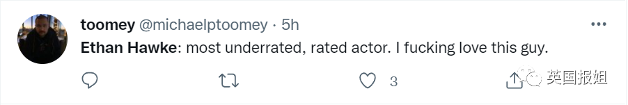 “伊桑霍克就是最被低估,以及最受欢迎的演员,我tm爱死这哥了!”