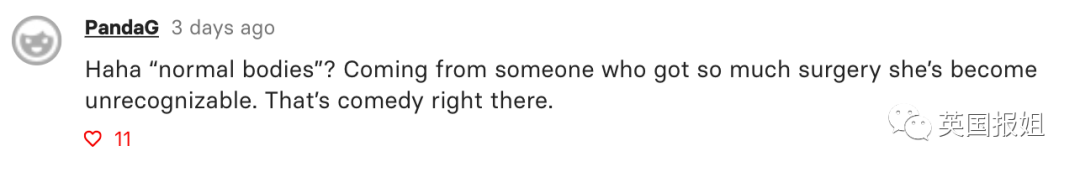 “哈哈‘正常身材’?一个做了N多手术都看不出是谁的人这么说,这是喜剧吧。”
