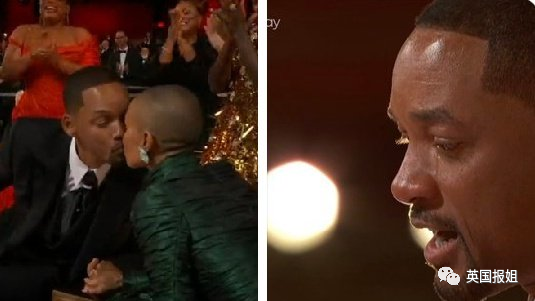 说着说着史皇还流下眼泪,镜头也拍到他回到观众席时亲吻妻子Jada的温馨场景。