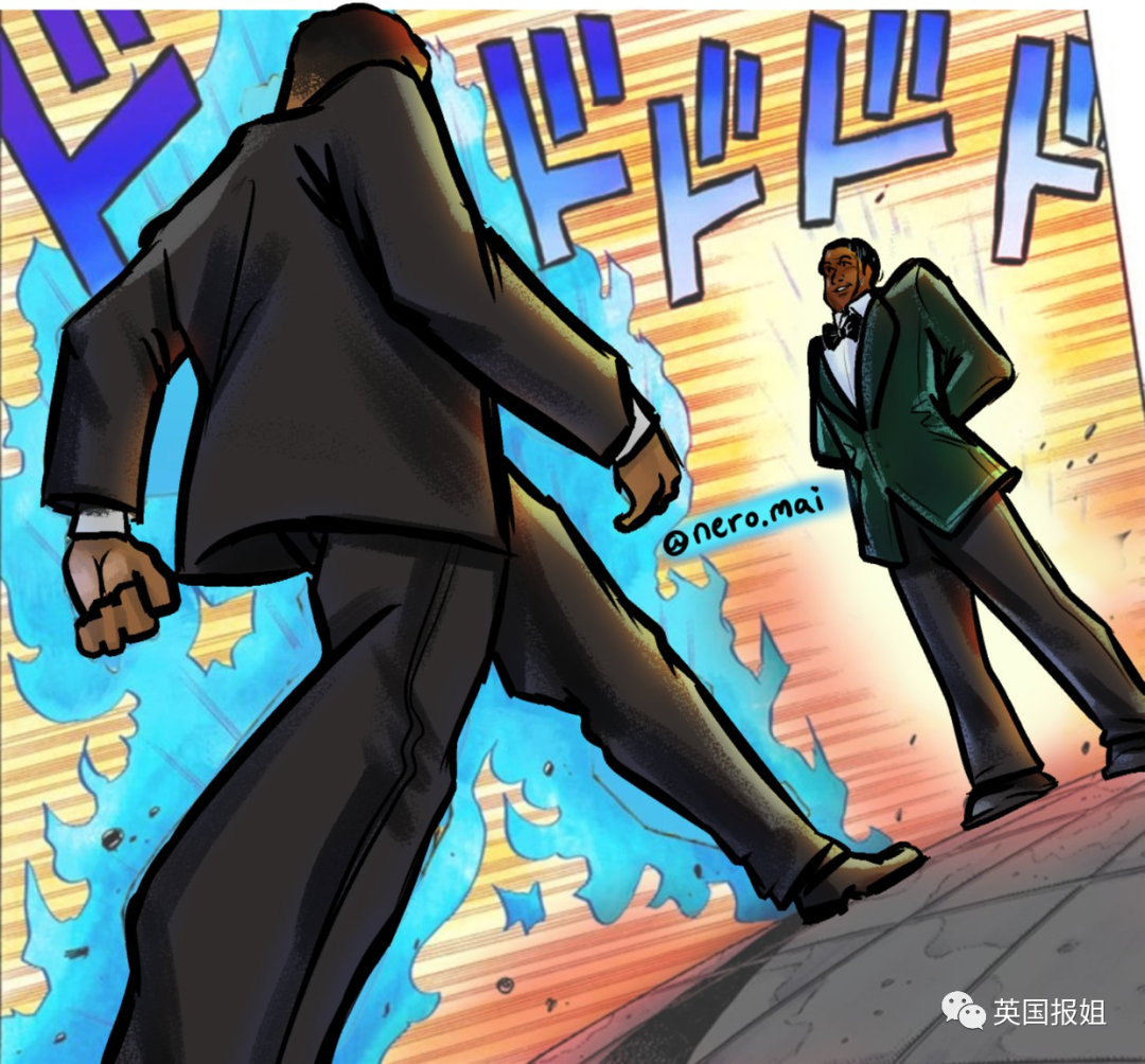 这时主持人还不知道他要干嘛,还点评说“刚才那个笑话讲的不错”,没想到史皇上去就给Chris Rock来了一巴掌。麦克风里传来清晰的一声“嘭”。