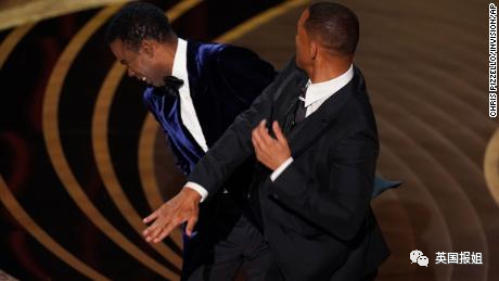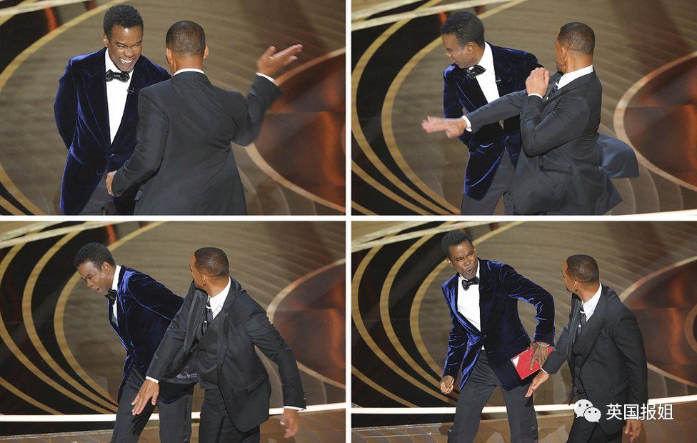 看到妻子面露怒色后,史皇也反应过来了Chris Rock话中带刺,突然冲上领奖台:
