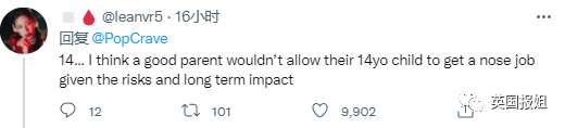 “14岁……我认为优秀的父母不会让他们14岁的孩子冒着危险和未来长期影响,去给鼻子做整形手术。”