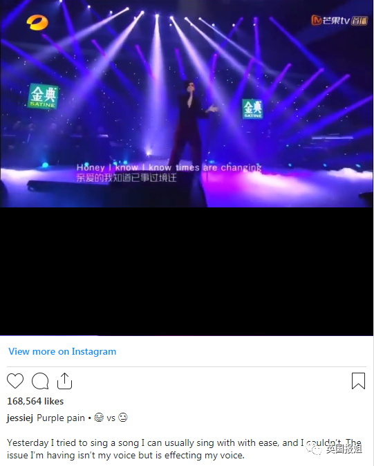 去年8月,她在ins上po了一条曾在国内音乐比赛里唱歌的视频,配文是她健康状况的更新,字里行间都是被病痛折磨的痛苦。