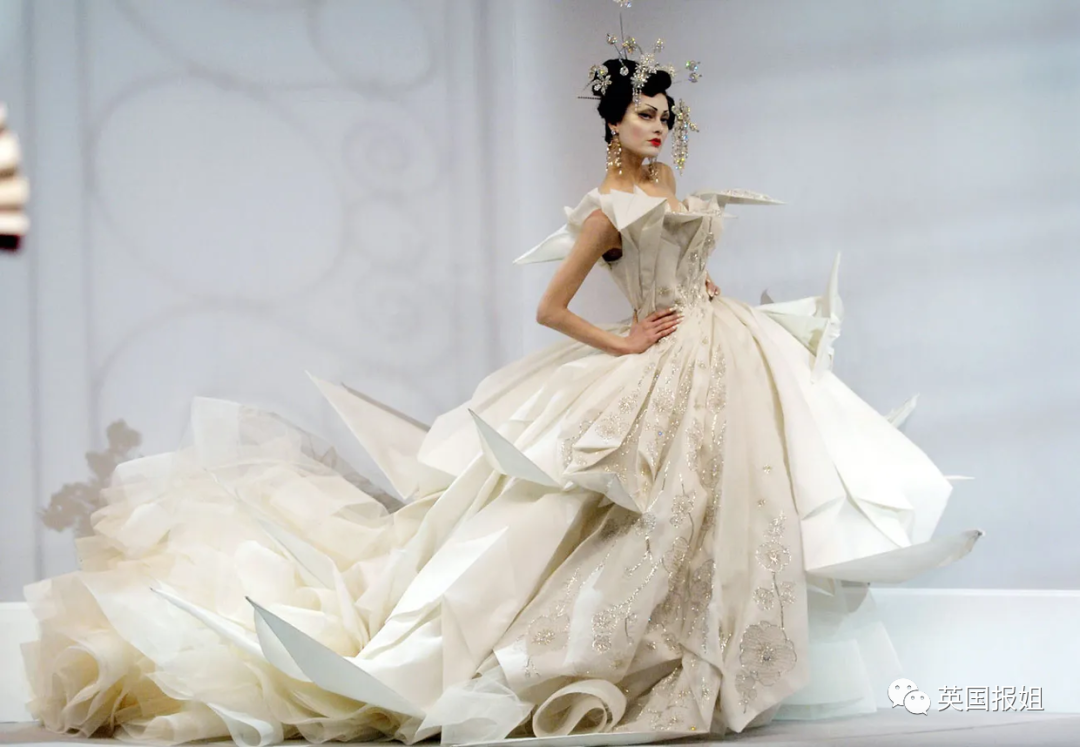 这是时装品牌Maison Margiela2021春夏系列的作品片段,系列全名Sealed With A Loving Kiss,以爱之吻封缄。也有网友称其为“僵尸新娘”。
