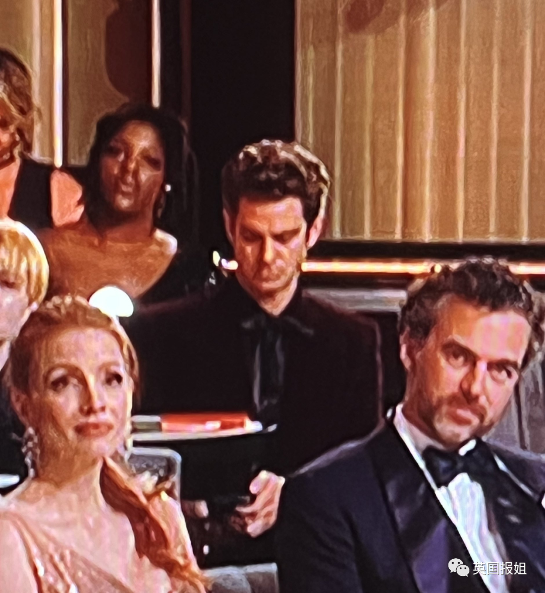 2017年奥斯卡石头姐拿影后,加菲在台下看起来好像泪流满面,为她的成功感到由衷的高兴。