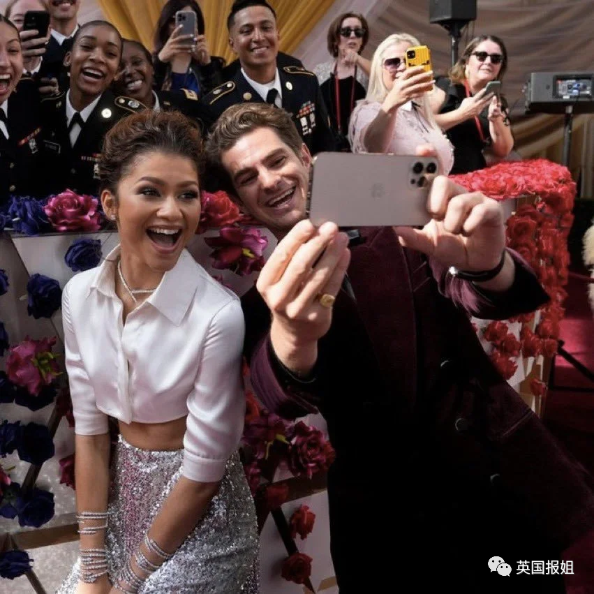 这一出圈,网友赶紧扒出他的其他可爱瞬间:拦住赞达亚红毯去路,招呼小姐妹来自拍。