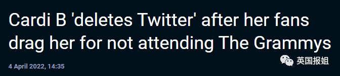 不光如此,卡老师甚至因为没有出席这一届格莱美,被粉丝围攻和谩骂,卡老师因此愤而注销了ins和twitter,宣布退网。