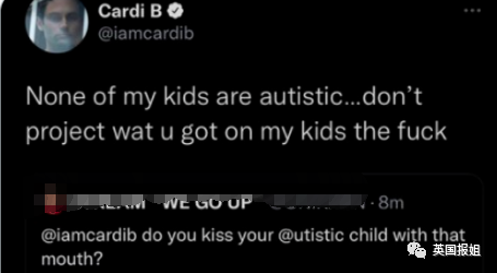 “我从没认为患有自闭症是什么不堪的事情,但不要用这个造谣我的孩子。他们都不是自闭症患者,该死的。”
