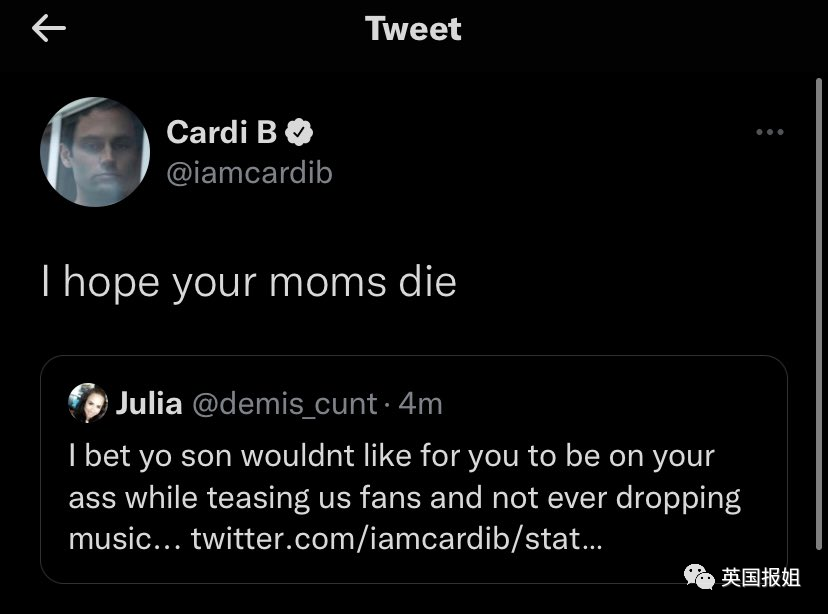 因为骂人,卡老师受到了更多围攻,事情快速发展到了两边对骂,无法收场的境地。为此,她发了最后一条帖子反击,然后就把所有推特都删掉了: