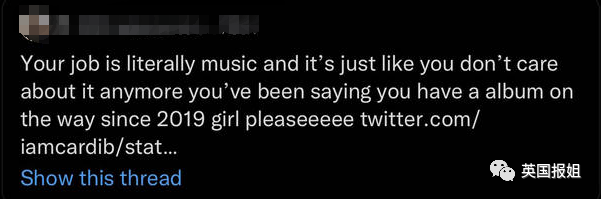 其中一个认为卡老师就是贪图享乐,心思不在做音乐上,其他的话都是借口:你的工作就是做音乐,但你看起来完全不在乎音乐了,你从2019年一直说你在做新专辑,拜托了姐妹,你骗谁呢?”