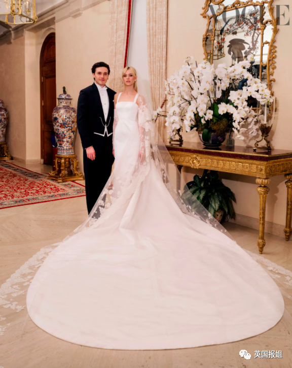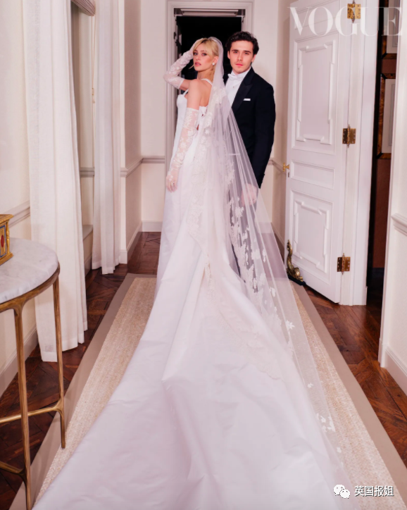 仪式结束后不久,婚礼照片曝光。一个字形容新娘,美!