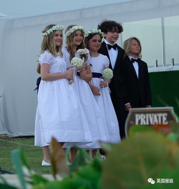 而最小的妹妹哈珀,是伴娘之一,身着白色公主裙,头戴花环,非常可爱。时光一晃,10岁的她也已经是大姑娘啦!