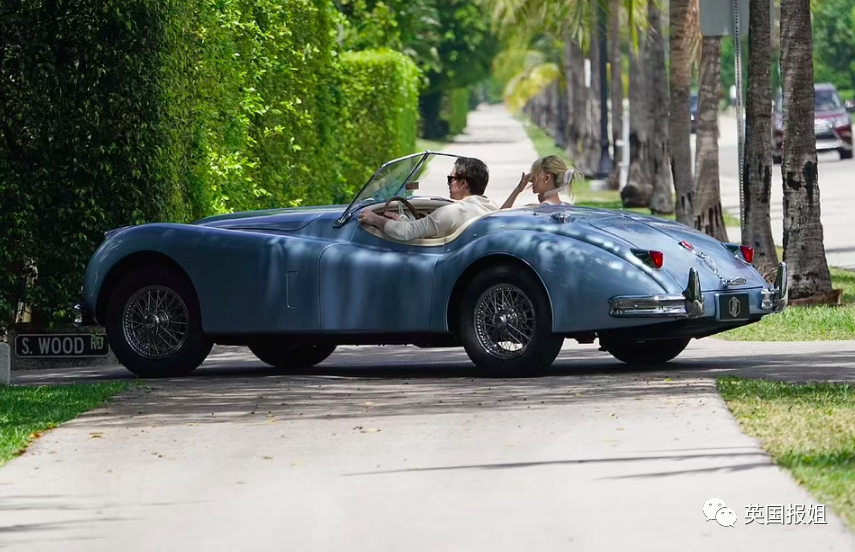 布鲁克林和爸爸各自都开了一辆价值178万人民币,1958年产捷豹XK150复古车,载着各自的妻子驶进现场,相当拉风。