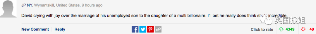“大卫高兴到哭是因为他的无业儿子和亿万富翁的女儿结婚了,肯定觉得妮可拉很棒呀。”