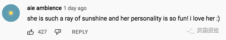 “她好阳光!个性好有趣!我爱她!”