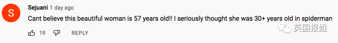 “她居然57岁了,难以置信!我以为她在《蜘蛛侠》才三十几岁。”