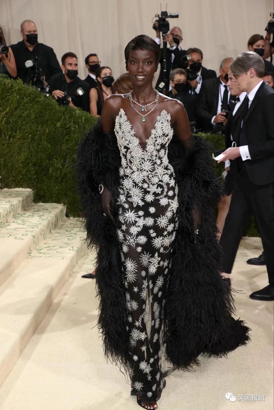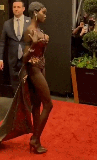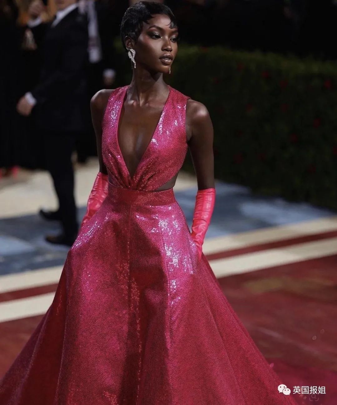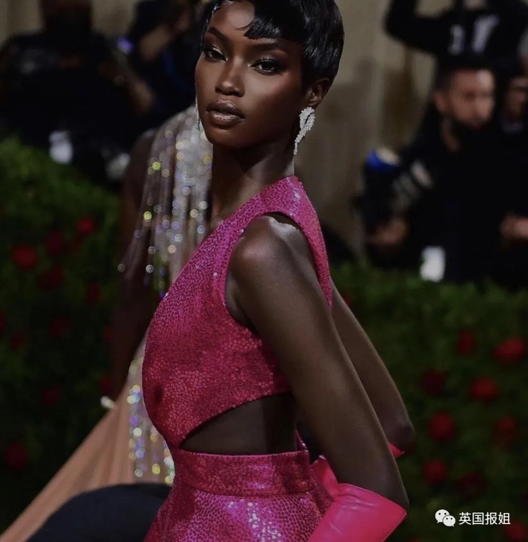 在今年所有的派对造型中,最为惊艳的应该就是黑人超模Anok Yai,她穿了一件相当简洁的金属色连体衣。