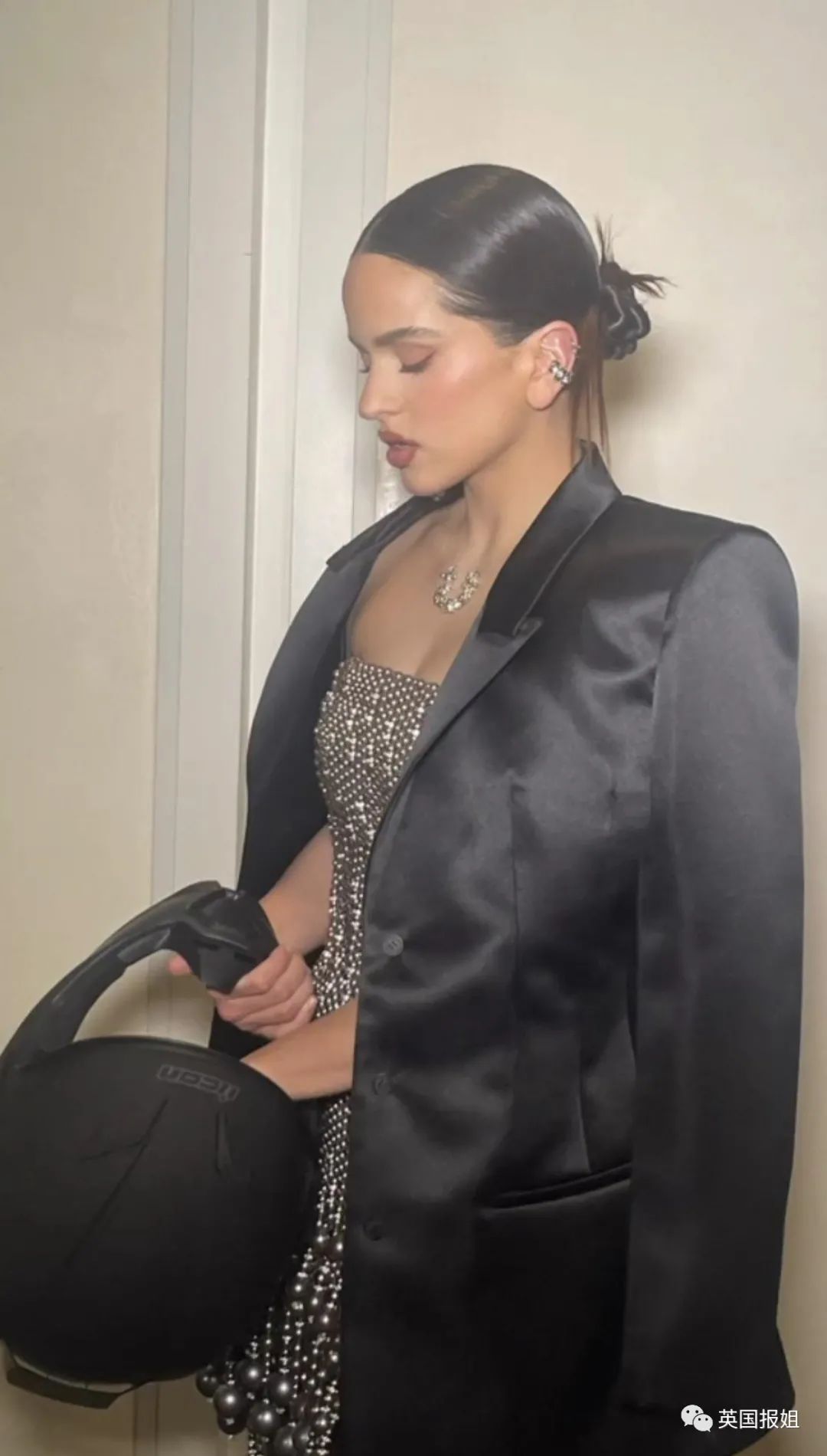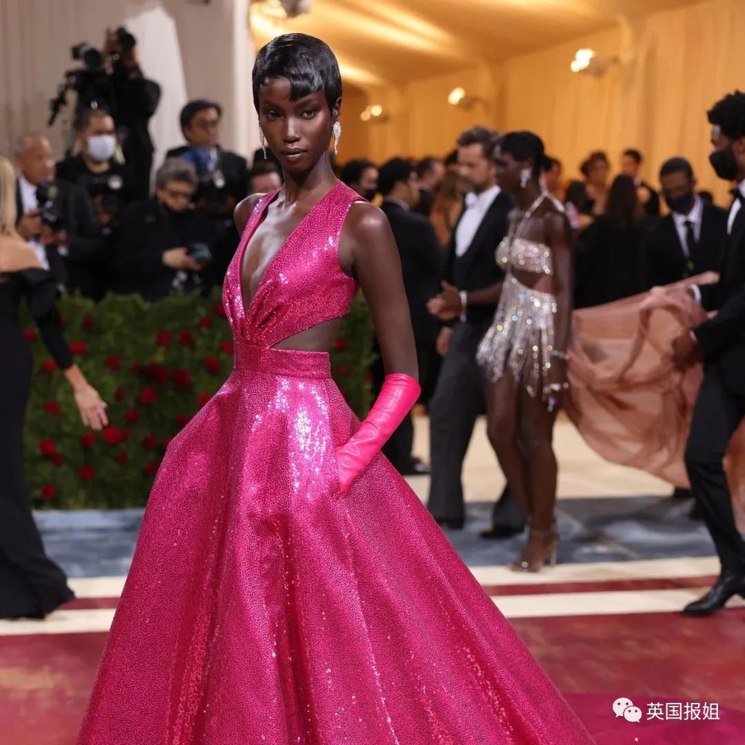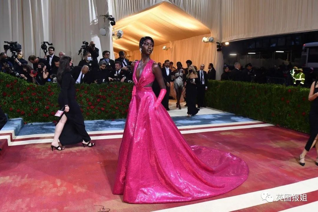 今年的met gala红毯造型,她穿了一件艳粉色亮片礼服,双手插兜,美艳中又带着一丝飒气。