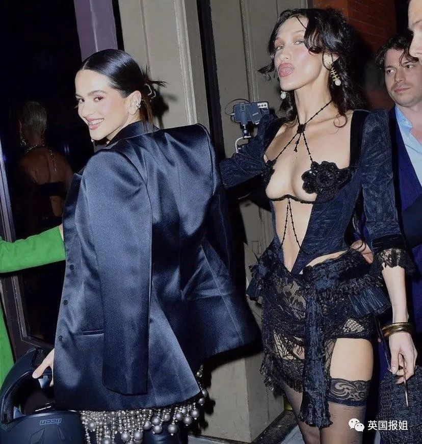 超模贝拉哈迪德和肯豆的after party造型元素类似,都着重强调了蕾丝,只是贝拉的服装要更繁复花哨一些。