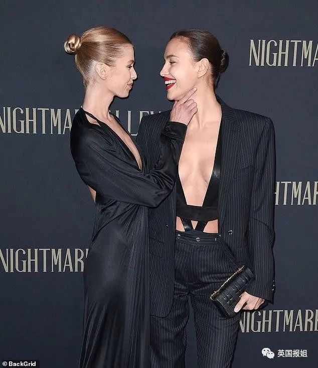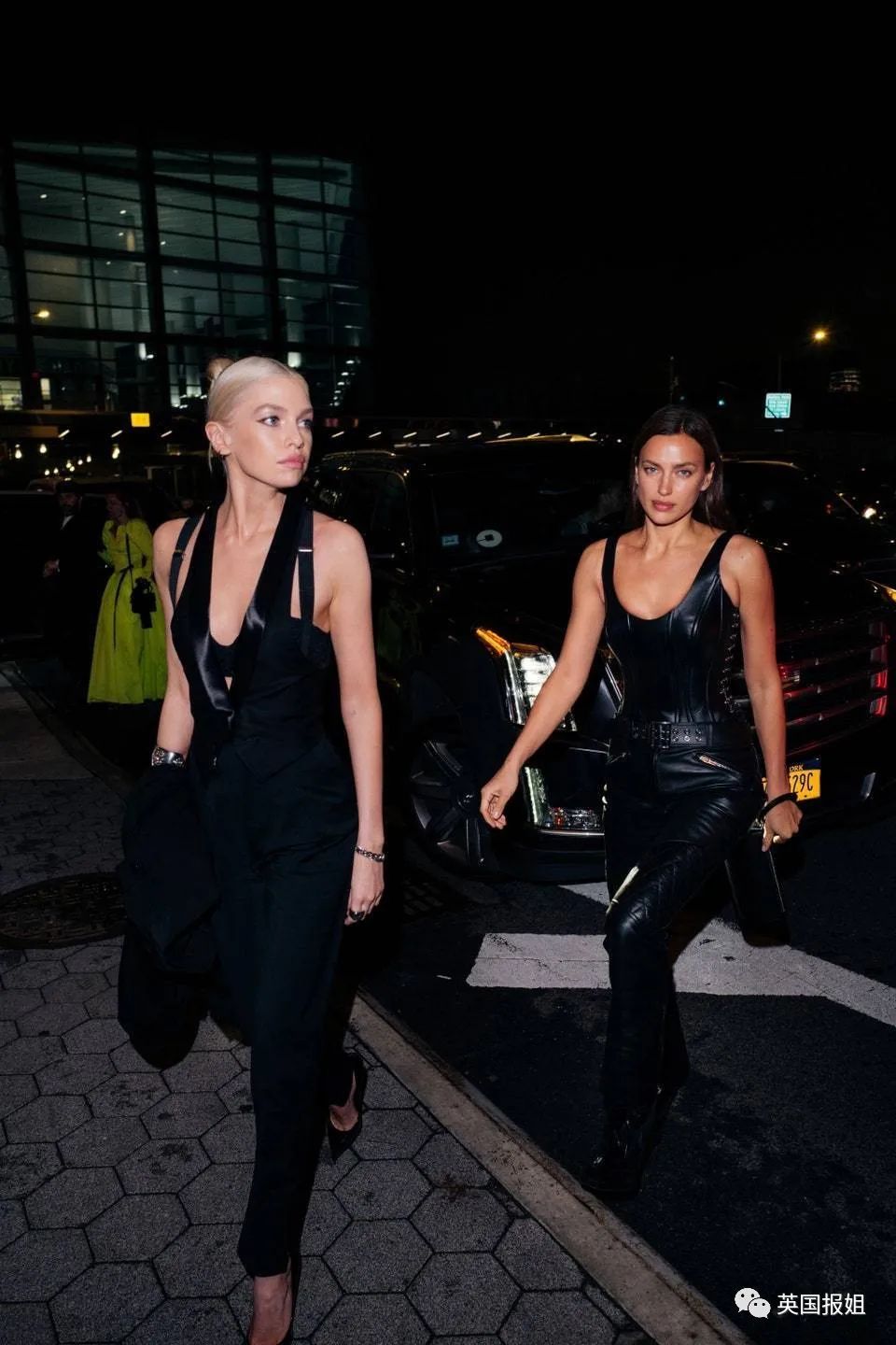 之前报姐还吐槽了超模Irina Shayk在红毯上的这一身皮衣造型,但当她脱掉外套,和同是超模的Stella Maxwell站在一起,黑发、金发两个美女简直太配了!