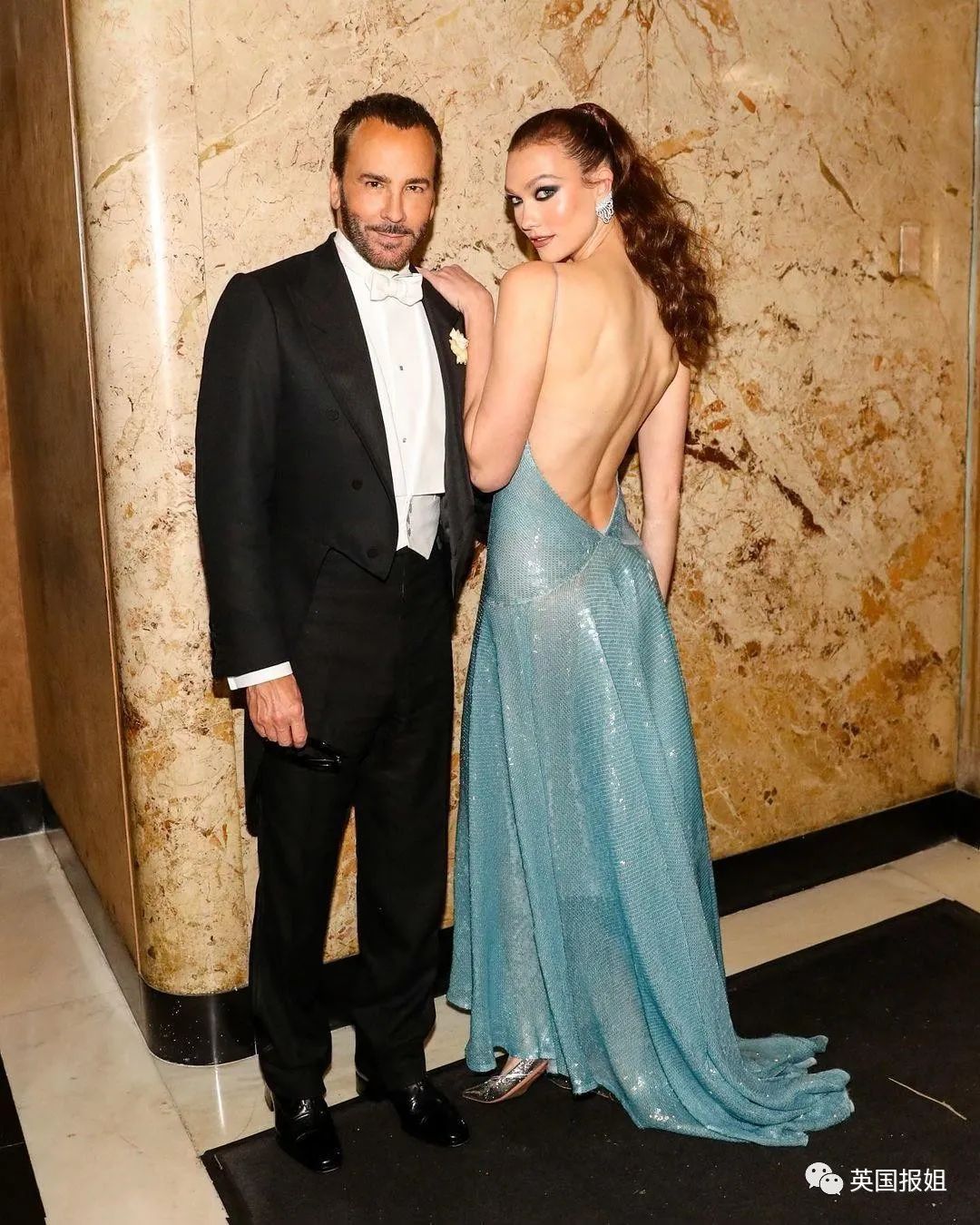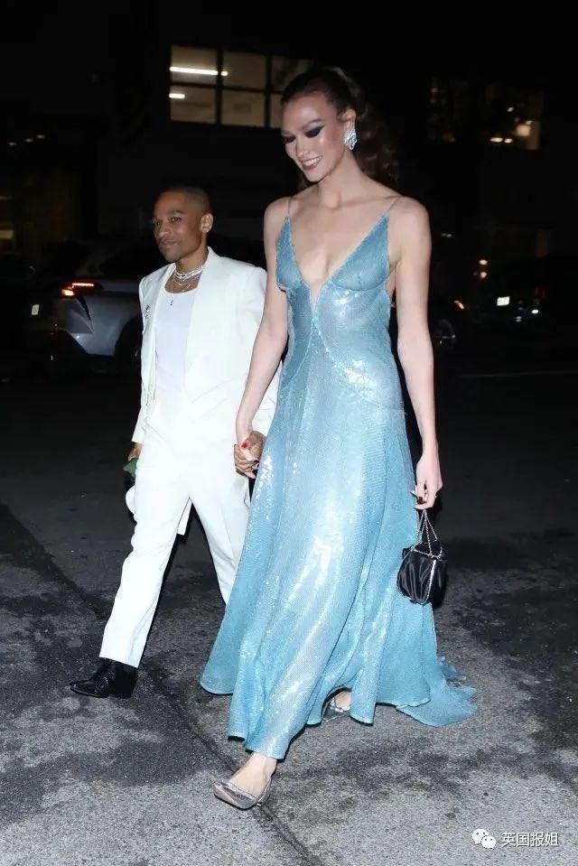 超模Karlie Kloss的浅蓝色长裙也很突出,完美身材的她穿上这条裙子,就像是刚从海底深处浮出水面的美人鱼一样灵动唯美,荡起的裙摆在灯光下熠熠生辉,像月光映照在海面泛起的点点碎金。
