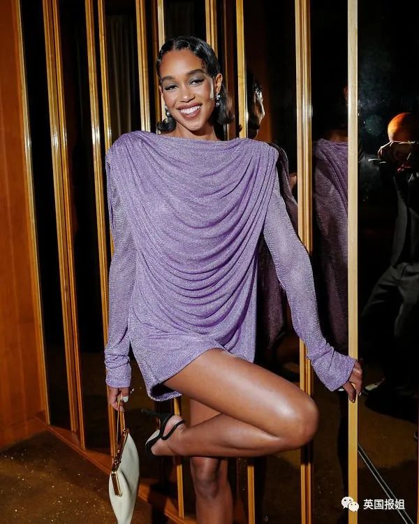 女演员Laura Harrier这样的大美女,穿一身浅紫色亮片短裙,看似没什么特别的,但转过身来回眸,露出背部优美曲线,加上手推波纹发型和钻石耳环,完全就是复古名伶。