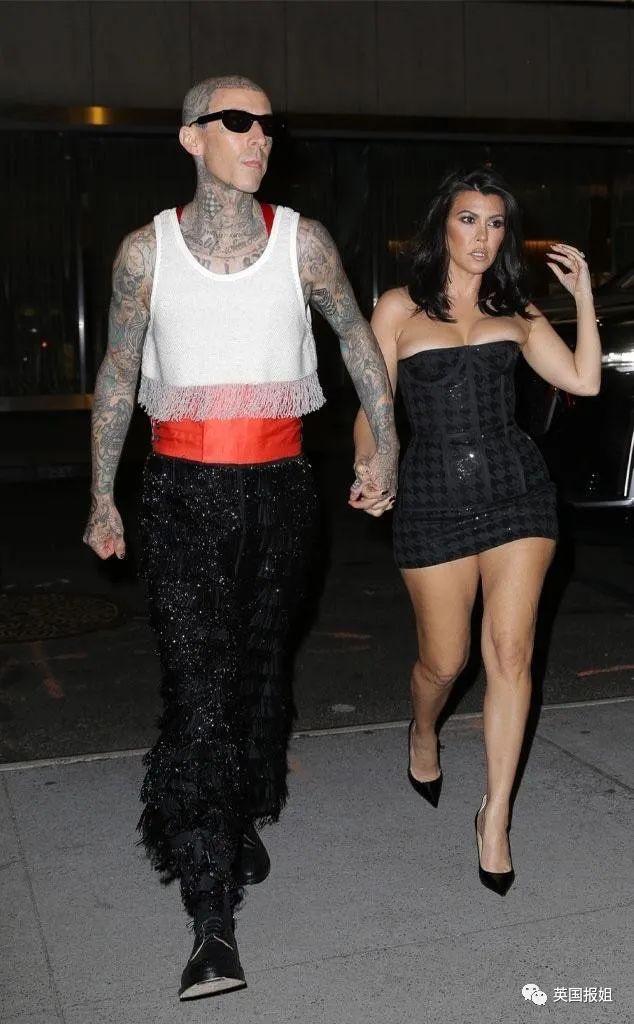 卡戴珊大姐考特尼和未婚夫特拉维斯巴克也参加了派对,吃瓜网友:大姐的派对造型看起来比起她的红毯礼服好多了。