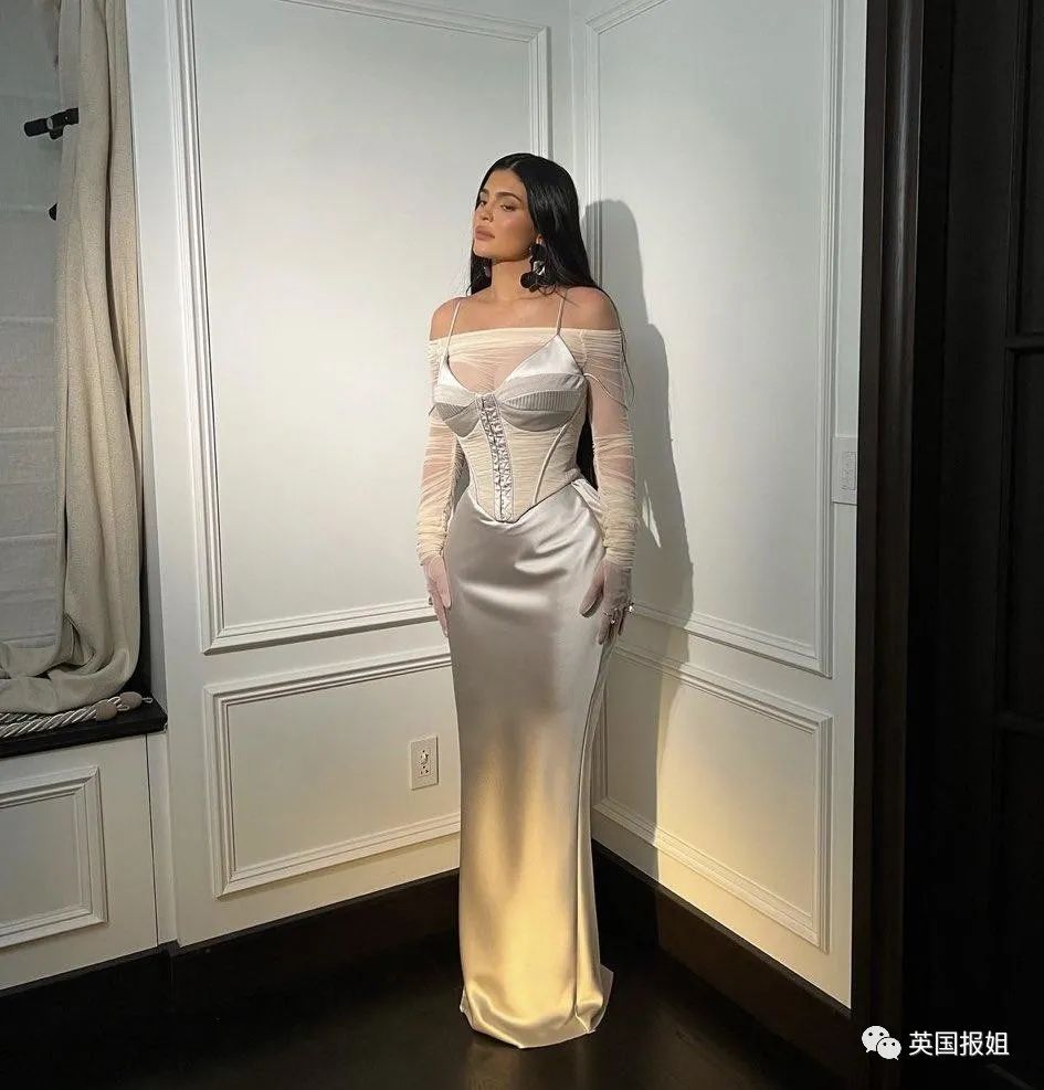 大姐这套是,妹妹凯莉詹娜的派对纯白礼服也是,紧身胸衣搭配缎面丝滑下裙,勾勒出爆炸的身材轮廓,看上去性感又高贵。
