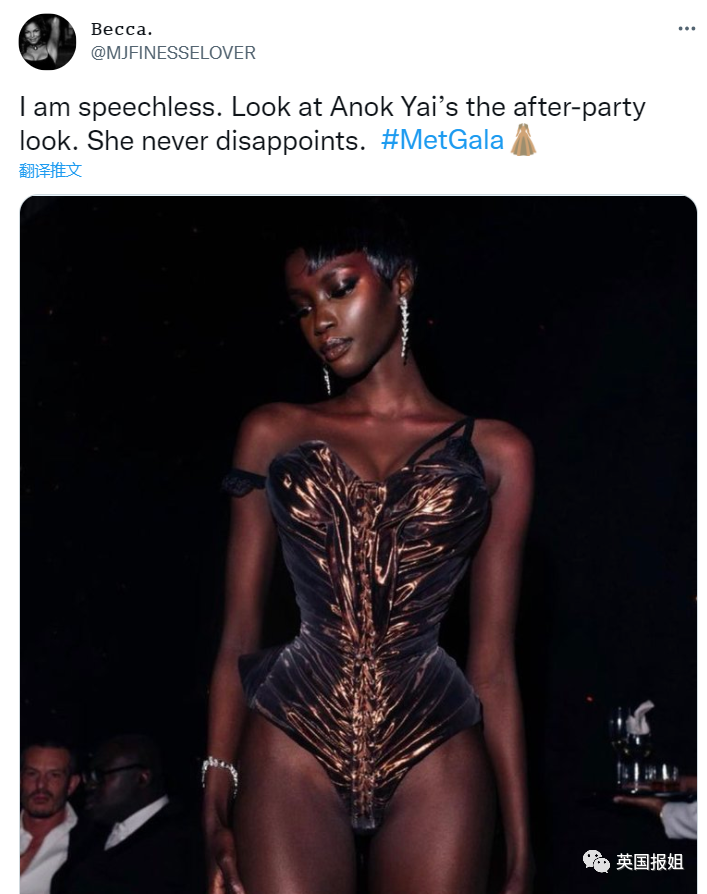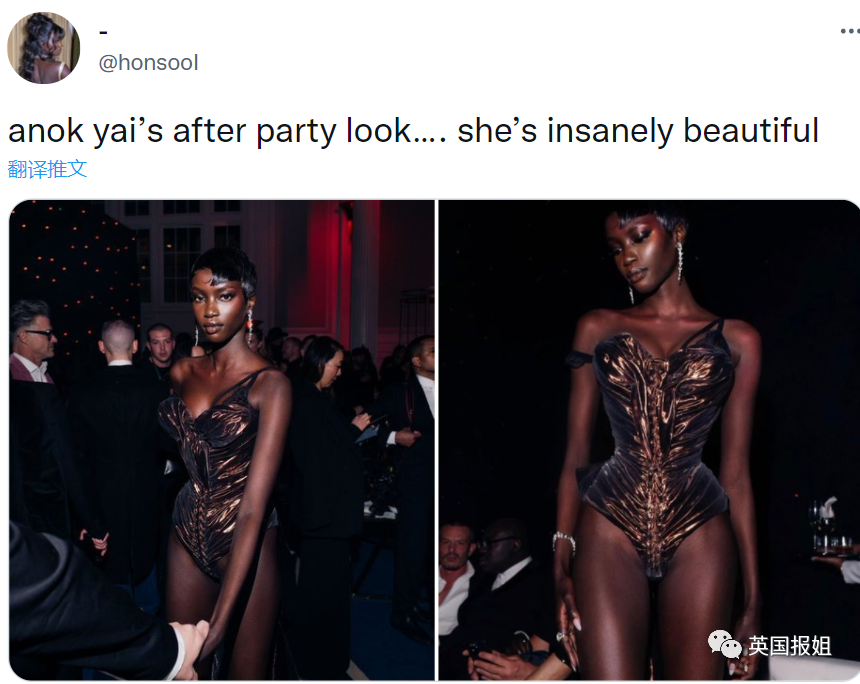 “我已经说不出话来了。你瞅瞅Anok Yai的after party造型,她就是永远的神。”