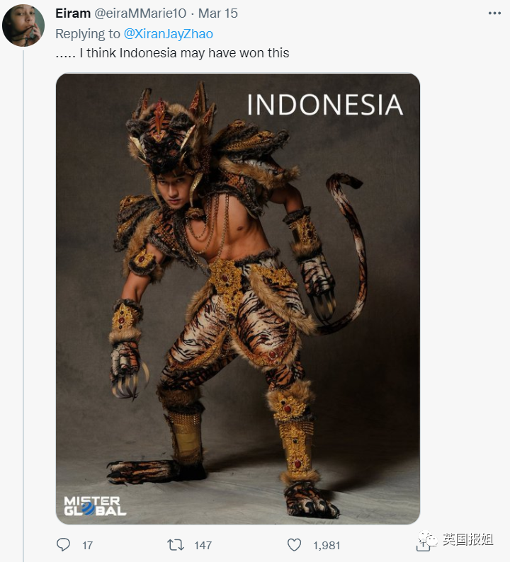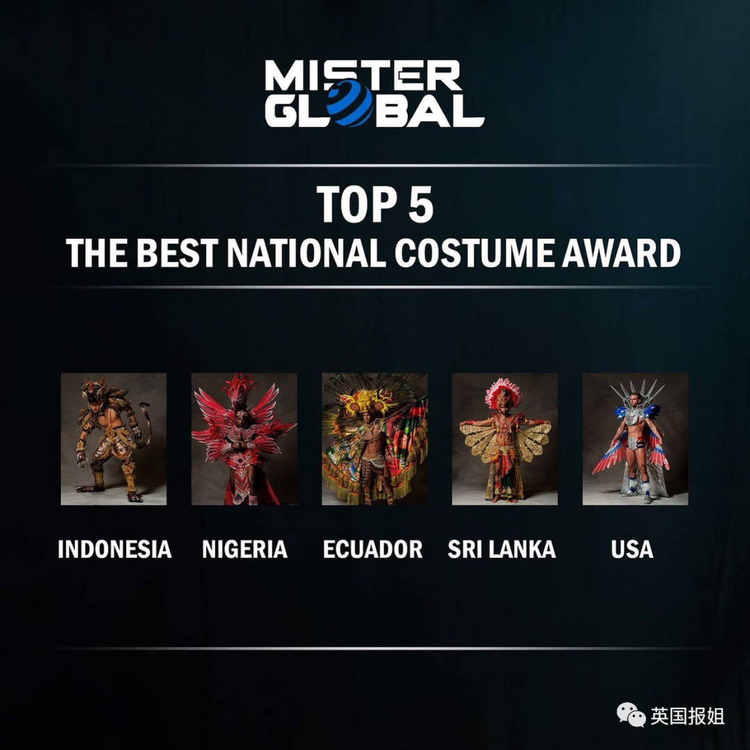 最终,官方选出来的民族服装选项前五名,是印度尼西亚、尼日利亚、厄瓜多尔、斯里兰卡和美国。