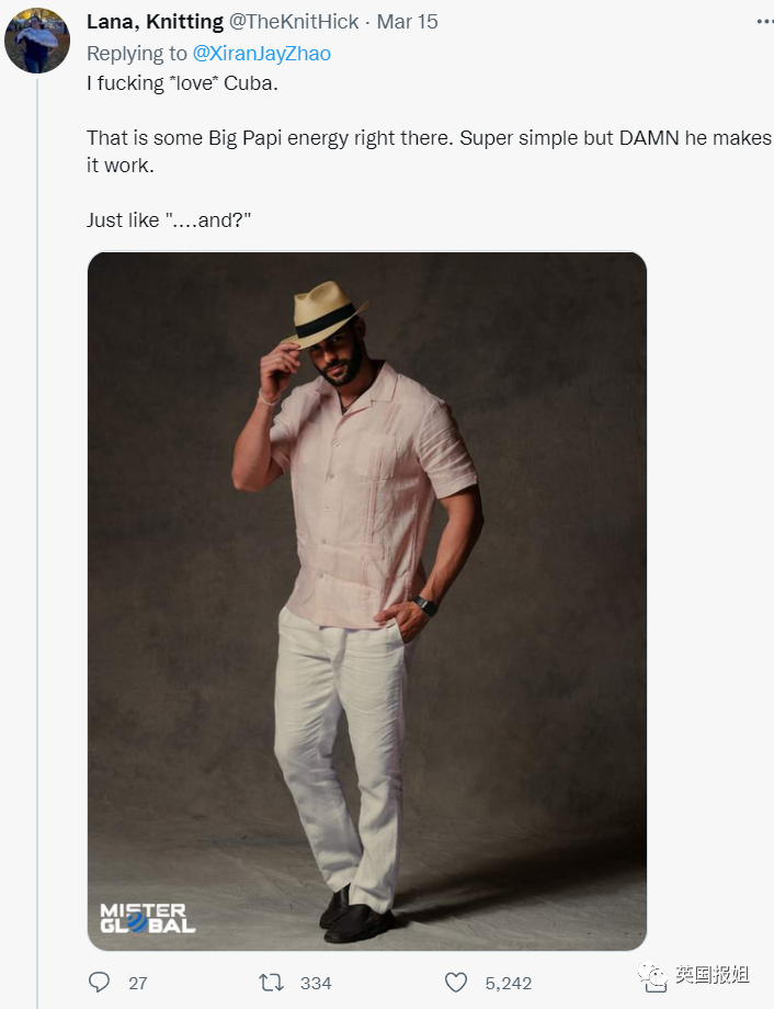 “我爱死古巴这个了。这就是成熟古巴男人,超级简洁,但是他喵的就是很帅。