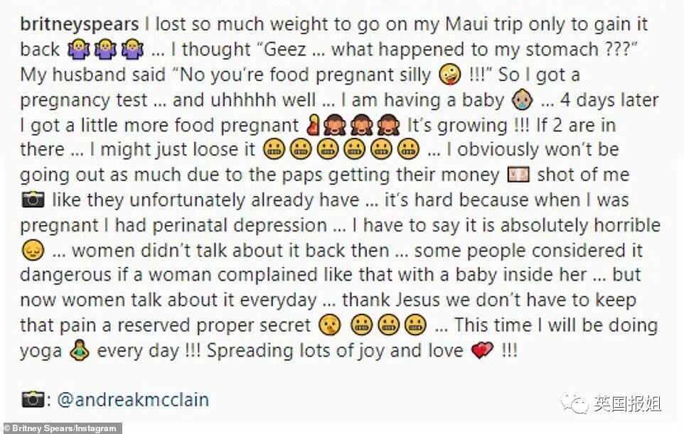 她自己对这个孩子的到来更是万分激动、期待,这一点从她宣布怀孕时发的帖子就可以看出来。