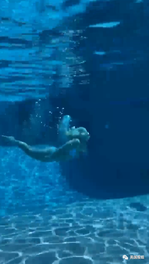 在游泳池里水下嬉戏,因为她“听说水(游泳)是对孩子最好的锻炼方式。”