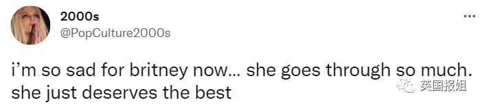 “我现在真的太为布兰妮难受了…她经历了那么多,她值得最好的。”