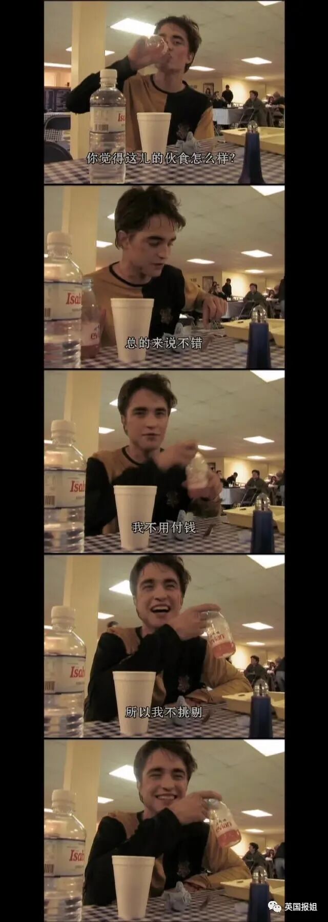 演《哈利·波特》因为吃饭不用付钱笑得像个憨憨,真·朴实,一点都不挑剔。