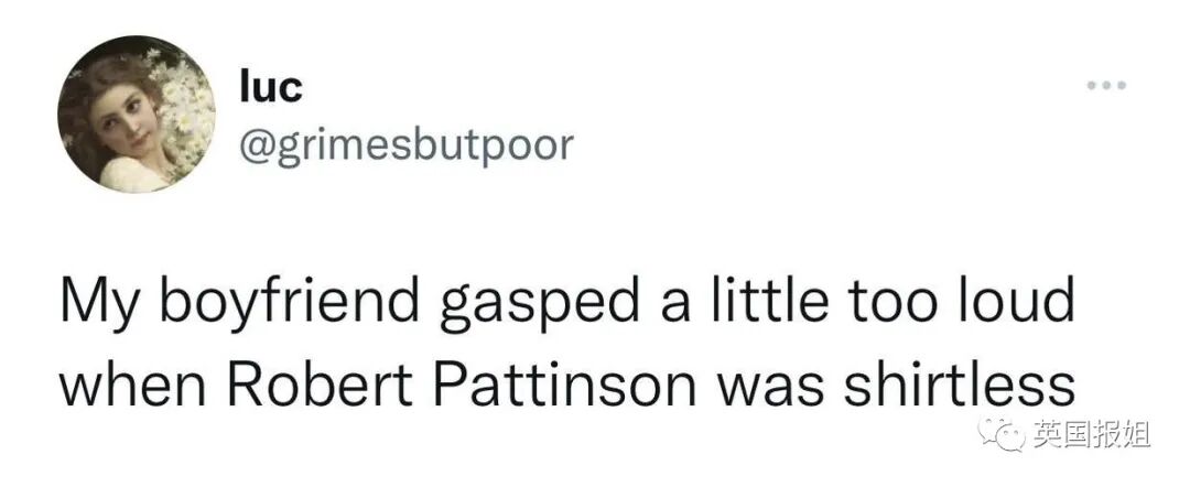 “罗伯特帕丁森在电影里没穿衣服的时候,我男朋友在旁边呼吸声都变大了。”