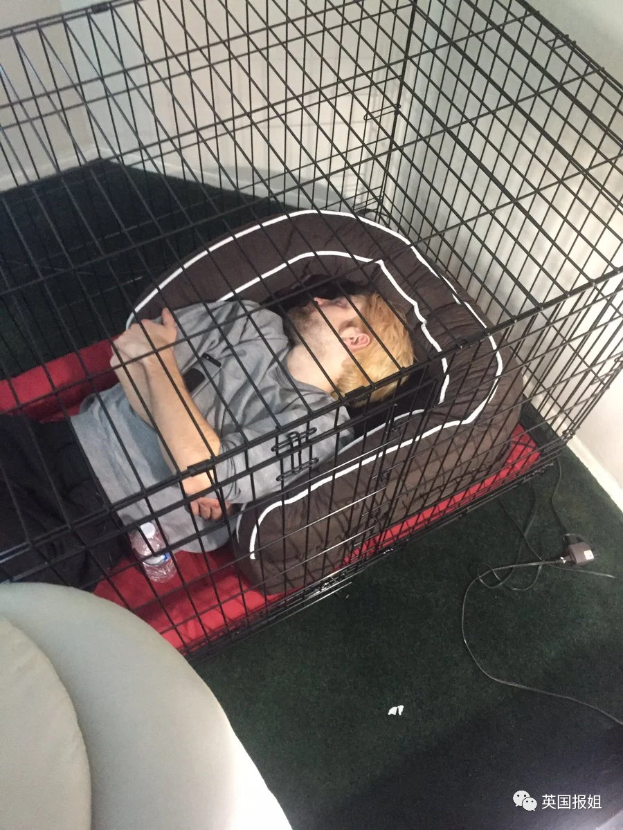 拍片的时候太累了,真的很想睡觉,然后睡在了狗笼里。