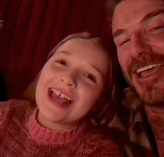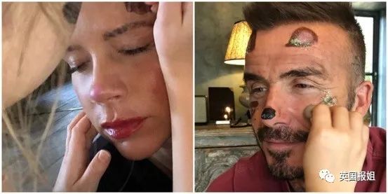 有时候小贝还和老婆一起给女儿当美妆模特,脸上被涂得花里胡哨。