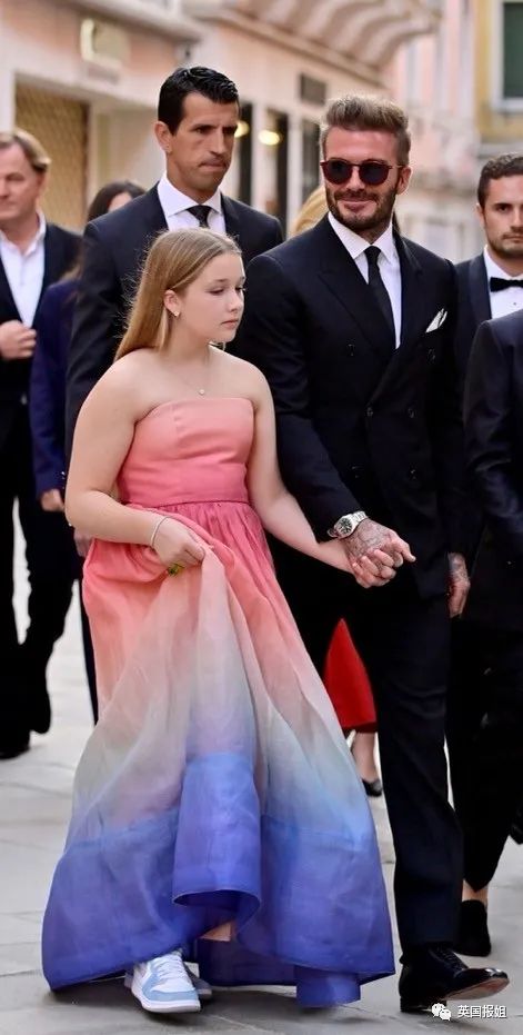 周一,大卫·贝克汉姆带着女儿哈珀·赛文·贝克汉姆(小七)出席了意大利威尼斯的一个剧院活动。