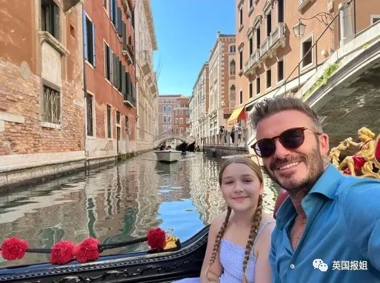 这次去意大利除了参加活动,小贝也带着女儿坐了威尼斯的贡多拉人力船。