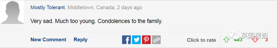 “好伤心,真的太年轻了!向他的家人表示哀悼。”