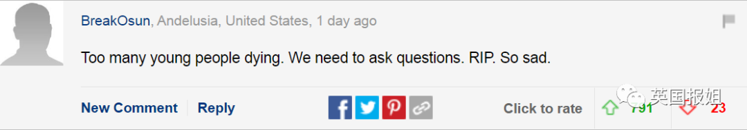 “太多年轻人离开了我们,我们需要好好想想这是为什么,RIP,真的太难过了。”