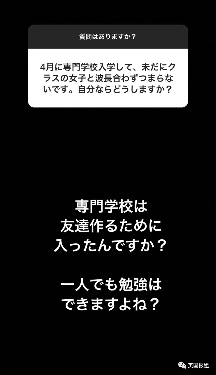 2019年的ins问答中,有人问:“4月开始要去学校上学了,但我一直不能和同学相处得很好,无聊啊,这要怎么办呢?”