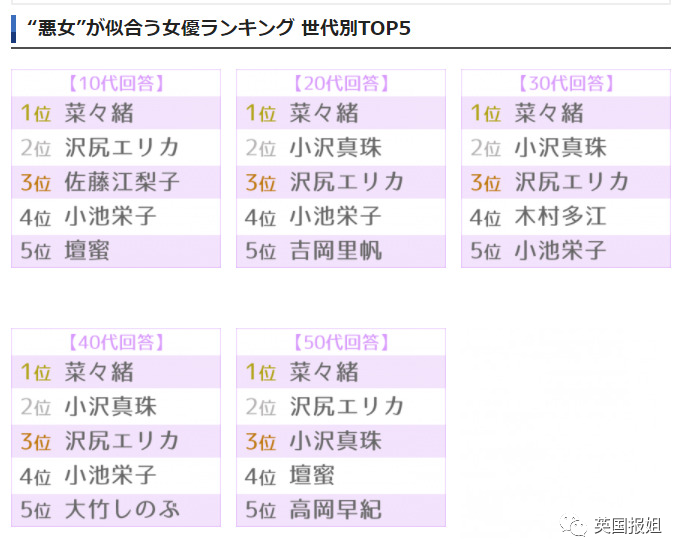 各年龄段观众都投票她为最适合演“恶女”的演员。