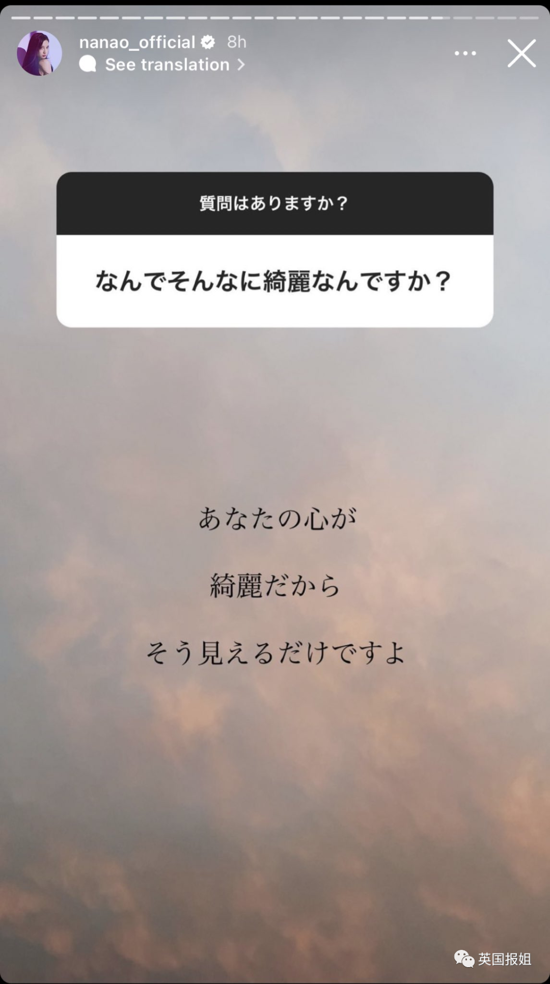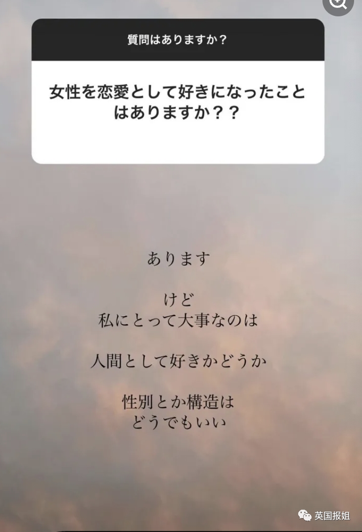 6月20日,菜菜绪更新Instagram story回复粉丝问题:你有没有喜欢过一个女人,并且将她作为恋爱对象?
